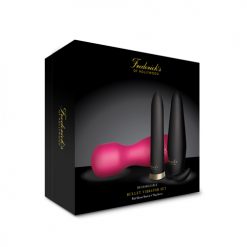 Deze Bullet Vibrator Set van Frederick’s Of Hollywood is een zeer uitgebreide set voor optimaal genot. Deze set bestaat uit een bullet vibrator met twee opzetstukken: een wand massager en een buttplug. De opzetstukken zijn gemaakt van zacht siliconen en zijn eenvoudig op de bullet vibrator te zetten. Maak de toys na gebruik goed schoon met een toycleaner en berg ze veilig op in de bijgeleverde toybag.