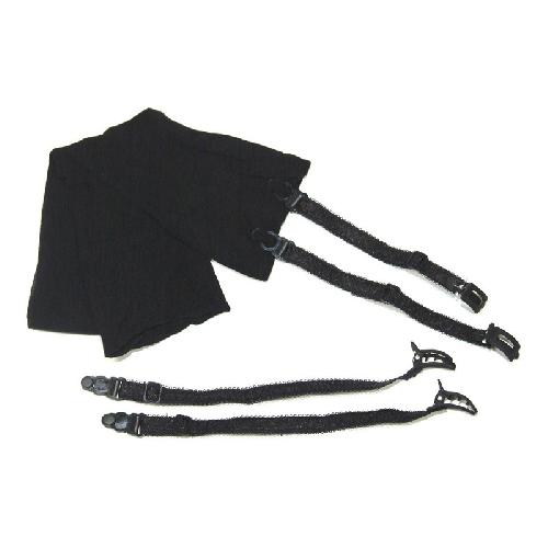 Set bestaat uit 4 verstelbare jarretel houders met schaamlippenclips plus een paar zwarte mooie nylon kousen.
