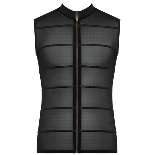 Dit stoere shirt is perfect voor de mannen die willen laten zien wat ze in huis hebben. Het shirt is gemaakt van doorschijnend materiaal dat veel van het lichaam laat zien voor een erotische look. De wetlook details en brede, goudkleurige rits geven een mooie twist.