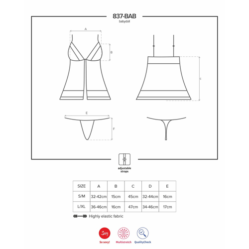 Deze babydoll heeft een open model met meerdere kanten details. De doorzichtige stof zorgt ervoor dat je lichaam goed naar voren komt. Alle bandjes zijn verstelbaar en deze babydoll heeft een diepe decolleté. Het is comfortabel te dragen.