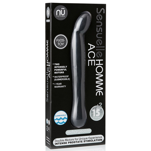 De Homme Ace Prostaat Vibrator van Nü Sensuelle is een vibrator speciaal voor mannen. De luxe vibrator heeft een fijne vorm en krachtige vibraties om de prostaat te stimuleren. De schacht is erg flexibel en heeft enkele groeven voor een stevige grip.