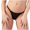 Deze zwarte lak string van Black Level geeft elke outfit een uitdagende twist. De zwarte string heeft een gladde, glanzende voorkant die gedeeltelijk open is. Door het open kruis loopt een zilverkleurige ketting die zorgt voor een ruige twist en meer sensatie tijdens het dragen. De bandjes zijn gemaakt van zacht elastiek voor een mooie pasvorm.