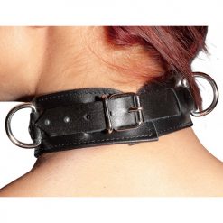 Ga voor een uitdagende look met deze spannende bondage halsband. Doe deze halsband om tijdens een spannende avond en ga verleiden. De leren halsband is gemaakt van kwaliteitsleer en is versierd met sterren en D-ringen. De halsband heeft een gespsluiting en past daarom bijna iedereen. Aan de D-ringen kun je kettingen maken.