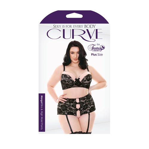 Voel je sexy en onweerstaanbaar in deze sexy set van Curve. Deze 2-delige set bestaat uit een BH en een jarretelslip. De stof heeft een sierlijk gebloemd design en is voorzien van elegante strikjes. De BH heeft voorgevormde cups die zijn voorzien van stevige beugels. De spaghettibandjes en de jarretelbandjes zijn ruim verstelbaar. Leuk te combineren met bijpassende kousen voor een complete look.