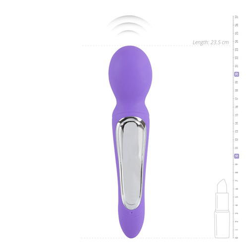 Deze paarse vibrator van het merk Sweet Smile is voorzien van 2 motoren. De motoren zijn geplaatst in elk uiteinde waardoor de vibrator aan beide kanten kan worden gebruikt. De zachte, ronde kop is perfect voor massages terwijl de spitse kant gebruikt kan worden voor een meer gerichte stimulatie. Beide motoren zijn voorzien van 10 verschillende vibratiestanden die je bedient met de drukknopjes. Na gebruik is de vibrator eenvoudig en snel op te laden met de USB oplaadkabel.