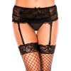 Plus Size Smalle Kanten Jarretelgordel Met Kanten String – Zwart