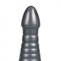 Uit de American Bombshell collectie een zeer grote dildo van Rockeye ontwerp. De dildo loopt taps toe, zodat hij gemakkelijk in te brengen is en heeft een geribbelde schacht voor extra genot. Geniet groots van deze opvallende dildo!