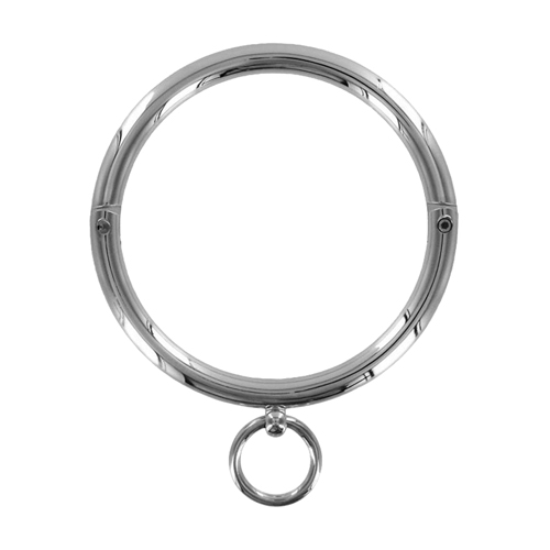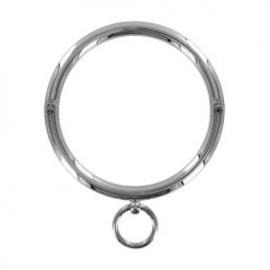 Leg je slaaf aan de ketting met deze mooie halsband van hoge kwaliteit staal. De glimmende zware verchroomde halsband geeft een heerlijk gevoel op de huid. Aan de ring aan de voorzijde van de halsband kan een touw of riem worden aangebracht om het bondage spel uit te breiden.