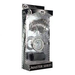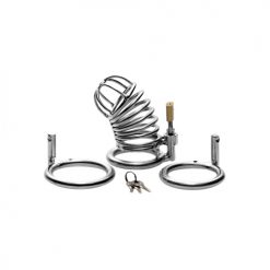Plaats het wapen van je partner achter slot en grendel. De Stalen penisburcht zorgt ervoor dat zijn mannelijkheid even geen kant op kan. Jij bent in control. Er kan gekozen worden uit drie in grootte verschillende ringen die als penisschacht dienst doen. Het fort van staal kan worden afgesloten met een bijpassend slotje met sleutel. Hij kan in deze stalen peniskooi geen volledige erectie krijgen. Pas als jij hem bevrijdt, kan hij zijn lid tot volle bloei laten komen.