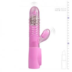 Deze roze krachtpatser vibrator heeft 6 vibratie standen en 6 pulseer standen. De vibrator vibreert, pulseert én stoot en is voorzien van een grote, ronde clitoris stimulator voor heftige, intense orgasmes. Laat je verwennen door je favoriete vibratie stand terwijl de vibrator op en neer beweegt. Om je helemaal ‘over the edge’ te brengen heeft deze vibrator in het midden heerlijke metalen kralen die je inwendig masseren. Door het geïntegreerde bedienings paneel aan de voorkant kun jij gemakkelijk zelf de snelheid bepalen waardoor je je compleet kunt focussen op genieten.