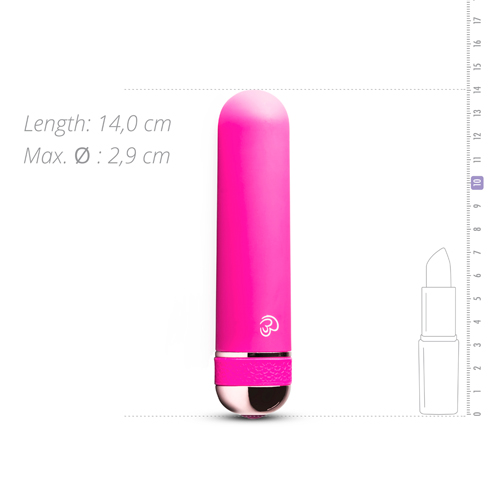 Deze kleine roze vibrator is geschikt voor veel verschillende vrouwen. De compacte sextoy is voorzien van mooie details zoals een bloemenpatroon en rosé gouden panelen. Het seksspeeltje is eenvoudig te bedienen met de drukknop aan de onderkant. De mini vibrator heeft 10 verschillende standen die bestaan uit snelheden en patronen. Werkt op 1x AA batterij.