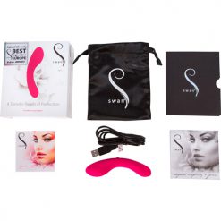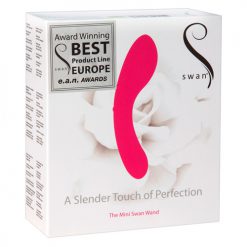 De Mini Swan Wand is een luxe vibrator met een compact formaat. De toy is voorzien van een zachte buitenlaag en heeft 2 krachtige motoren. De vibraties zijn traploos regelbaar met de drukknop. Hoe langer de knop wordt ingedrukt, hoe harder de Swan Wand zal gaan vibreren. Druk 3 keer snel op de knop als de vibrator uit staat om hem te vergrendelen. Druk nog een keer 3 keer snel achter elkaar om de vibrator te ontgrendelen. Daarnaast is de mini vibrator waterproof en oplaadbaar.